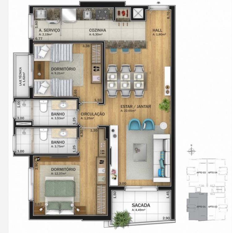 | Residenziale Savona- Apartamento no Panazzolo, 02 dormitórios sendo 01 com suíte, sala de jantar e sala de com sacada, cozinha com churrasqueira integrada a área social, área de serviço individual, 02 vagas de garagem, piso laminado, espera para calefação e água quente, espera para climatização (Split), hidrômetro individual, medidor de gás individual, gás central. Prédio com 04 apartamentos por andar, fachada revestida com pastilhas e pintura texturizada, acabamento com alto padrão de qualidade, esquadrias de PVC com espera para vidro duplo, grades com vidros temperado, cerca eletrônica, área externa com tratamento paisagístico, salão de festas mobiliado e equipado, fitness mobiliado e equipado, hall de entrada mobiliado e decorado, elevador codificado. Pronto para morar. |