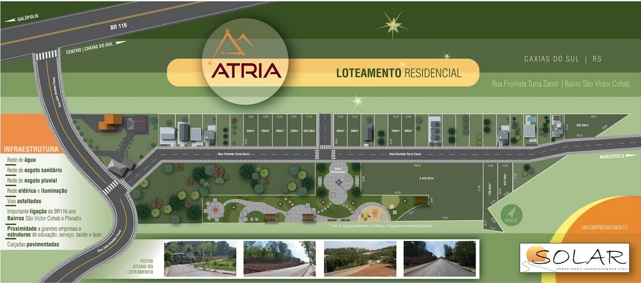 Excelente loteamento localizado no São Vitor Cohab, com metragens que variam de 360,00m² a 4.616.67m². O Importante ligação da BR 116 aos bairros São Victor Cohab e Planalto. Próximo a grandes empresas e estruturas de educação, saúde, serviço e lazer.