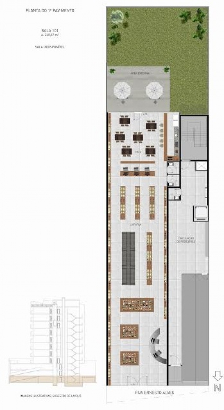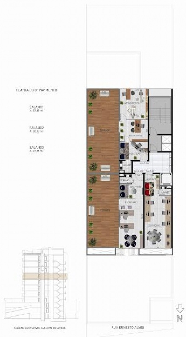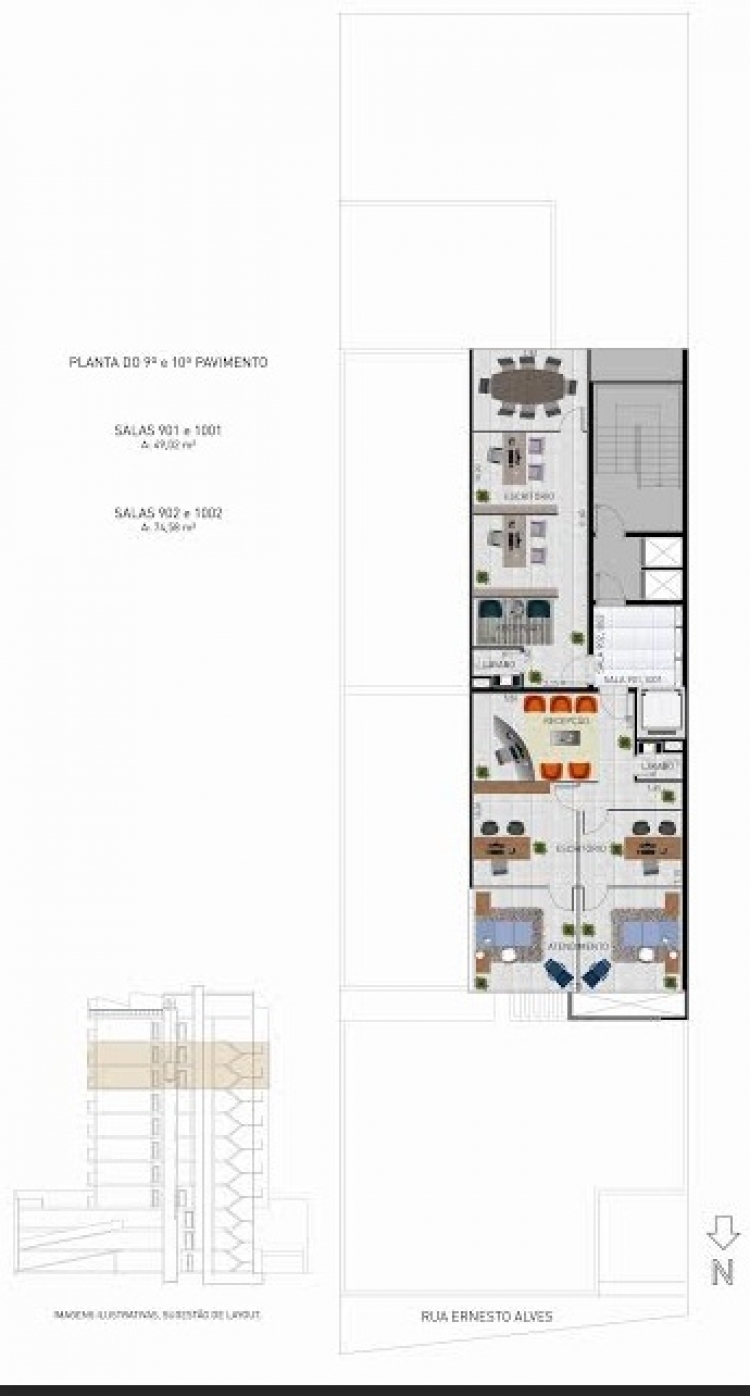 Sala aérea no Centro com piso em porcelanato, espera para Split e vaga de garagem. Consulte disponibilidade para outras unidades. Salas entre 37m² e 130m² com possibilidade de integração, terraço e com ou sem vaga de garagem. Prazo de entrega previsto para 2017.