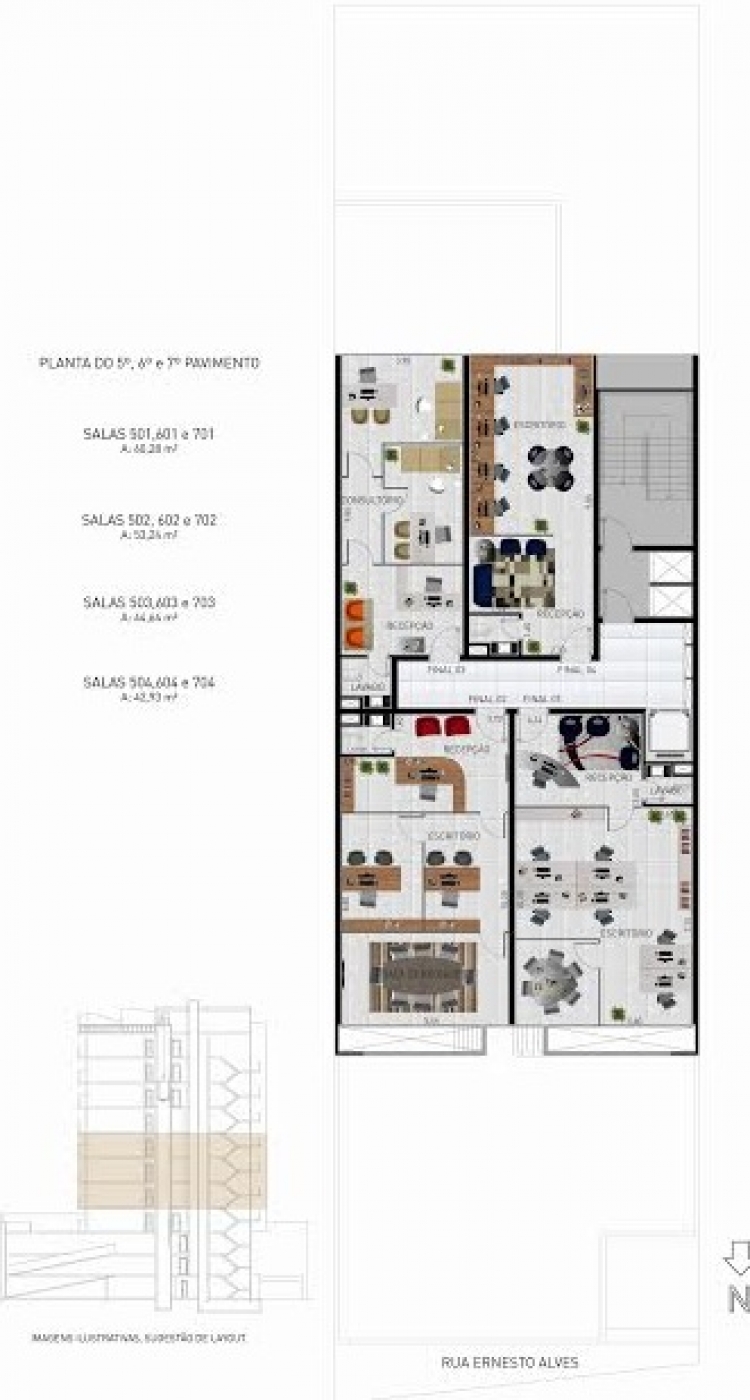 Sala aérea no Centro com piso em porcelanato, espera para Split e vaga de garagem. Consulte disponibilidade para outras unidades. Salas entre 37m² e 130m² com possibilidade de integração, terraço e com ou sem vaga de garagem. Prazo de entrega previsto para 2017.