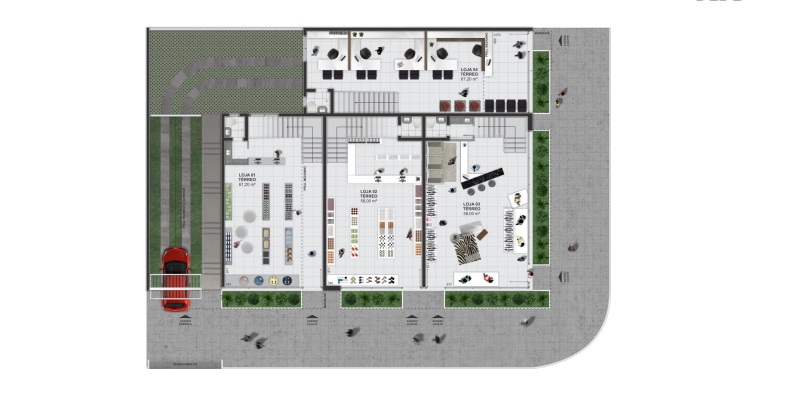 | Lojas térreas de esquinas, em excelente localização na área central da cidade, ponto privilegiado e de alto fluxo de pessoas e veículos, excelente orientação solar, metragens de 110.16 m2 e 134.58 m², mezanino, lavabo, espera para split em ambos os pavimentos, espera para copa no pavimento térreo, pé-direito de 3,80 metros no pavimento térreo + mezanino deslocado e balançado sobre a calçada, cerca de 41m² de área envidraçada, estacionamento rotativo. Acabamentos alto padrão, piso porcelanato. Previsão de entrega: Dezembro de 2018. |
